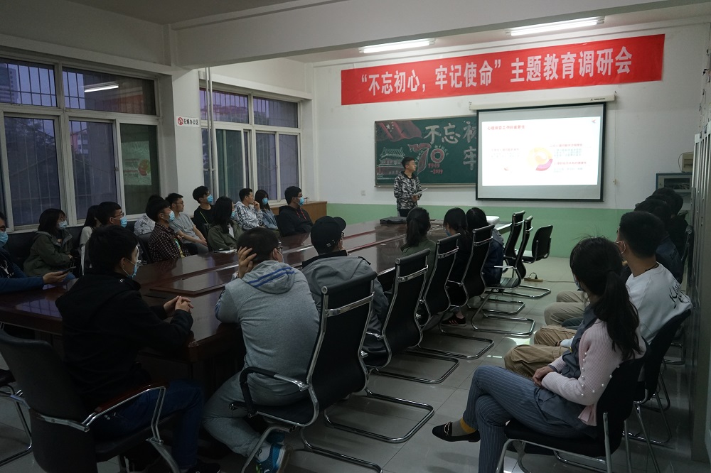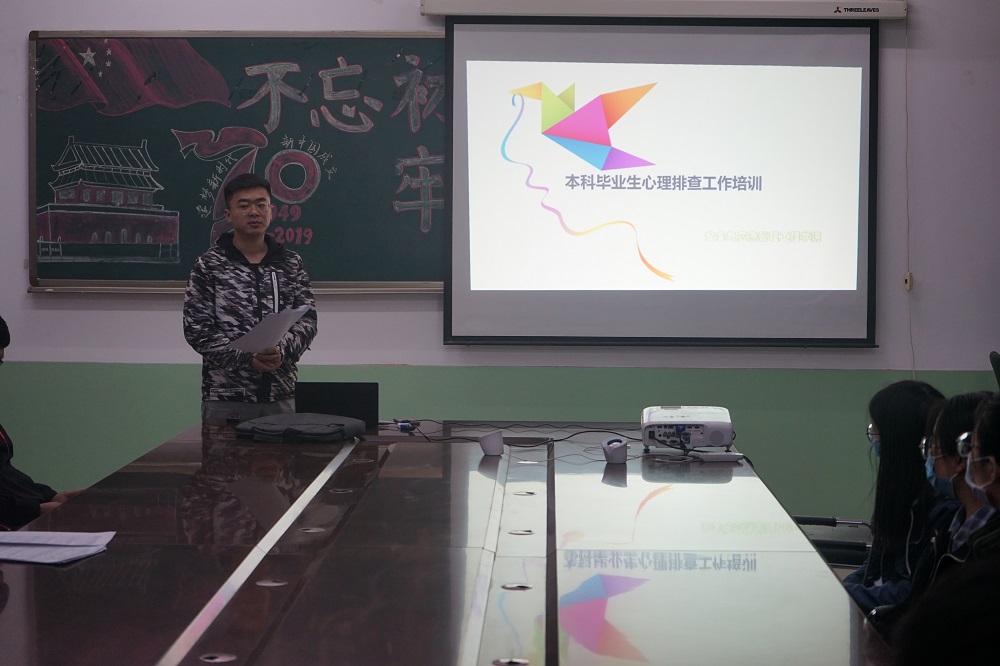 为了全面掌握我院毕业班大学生的心理健康状况,5月11日晚7点,按照学校心理咨询中心的统一安排,为夯实心理健康四级网络建设,发挥心理健康教育信息化管理平台作用,更好的利用网络开展心理健康教育工作,学院学生成长咨询中心组织毕业班心理委员和宿舍心理联络员,毕业班辅导员王少坤开展心理健康排查工作具体内容的培训,学院部分学生工作人员参加了此次培训。