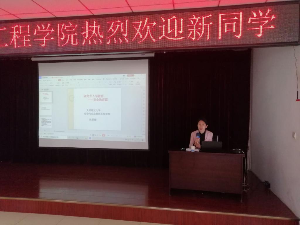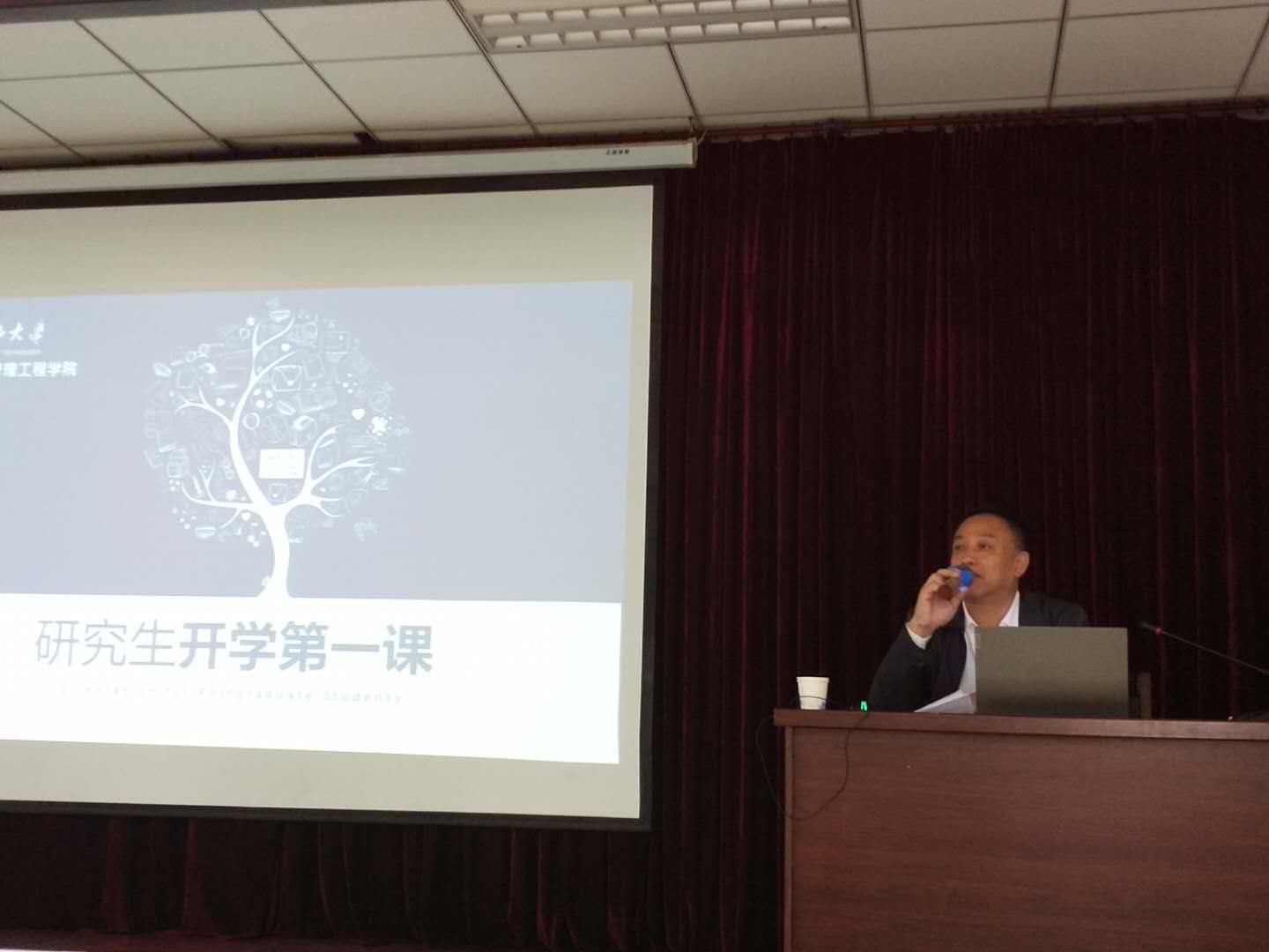 副院长杨艳国为学生展开爱校荣校教育,让新入学的研究生学子认识到自己身处理工大学,是自己的荣幸,同时更应该发挥自己的能力,让学校学院以自己为荣。