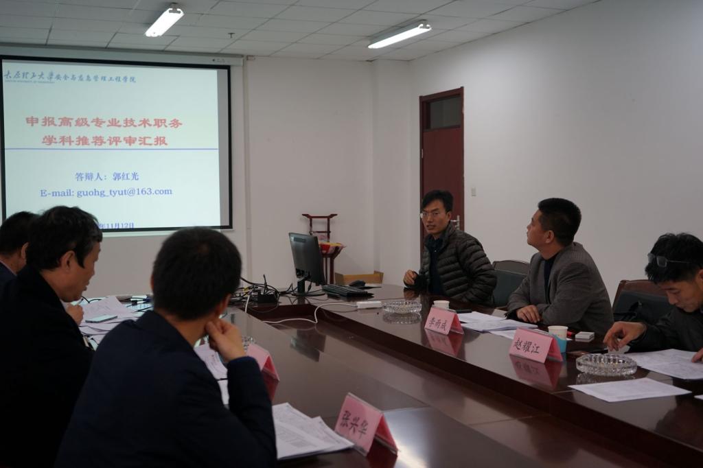 11月12日上午,永利集团3044官网欢迎您召开专业技术职称学科组评审答辩会,学科评审组成员葛少成、李雨成、邢玉忠、赵耀江、张兴华参加了会议,会议由副院长葛少成主持。