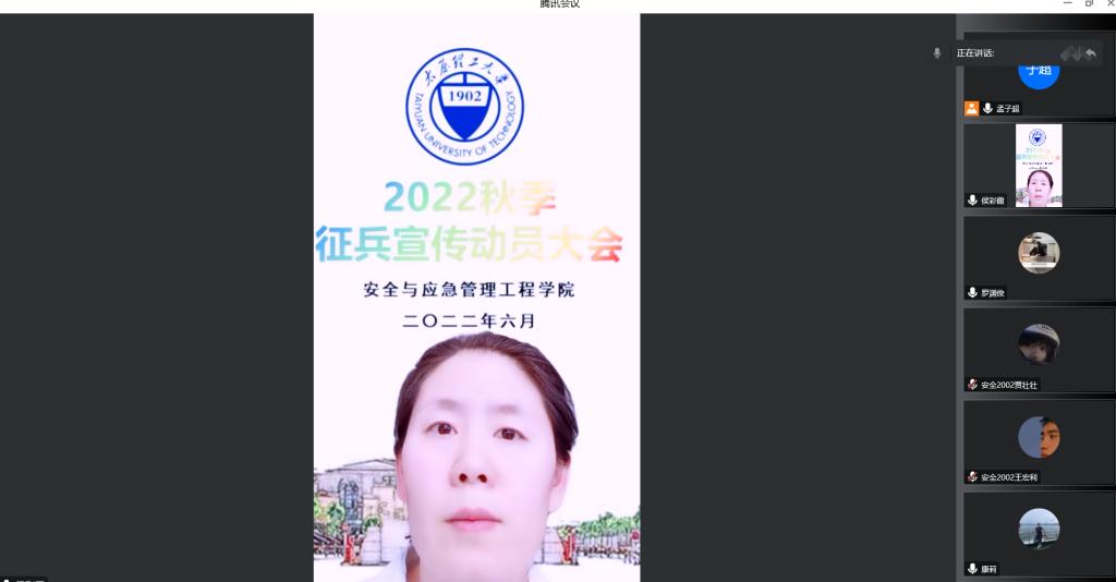 为深入推进我院大学生征兵工作,加强征兵政策宣传,鼓励广大安全学子参军报国,积极投身绿色军营,6月18日,永利集团3044官网欢迎您组织开展了线上大学生征兵宣传动员大会。院党委副书记侯彩霞、团委书记兼学工办主任康莉、全体辅导员及有志参军报国的百余位学生参加大会。