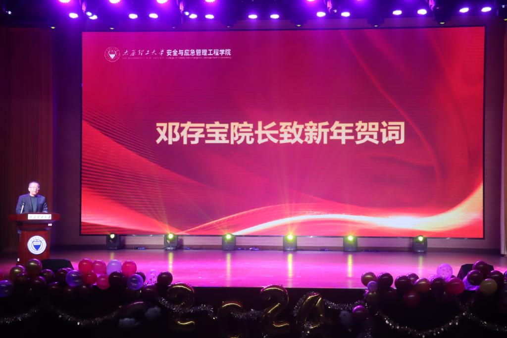 晚会伊始,院长邓存宝致新年贺词。他代表学院回顾了过去五年来学院的发展建设成就,向过去一年中辛勤耕耘在教学、科研、管理和服务一线的教职员工表示衷心的感谢,向刻苦学习、努力拼搏、积极向上的同学们致以亲切的问候和诚挚的祝福。他表示,新时代新征程,全体安全人要不忘初心、继往拓今,以民族复兴为使命、以党的建设为引领、以守护生命为己任,朝着更高的目标阔步前行。