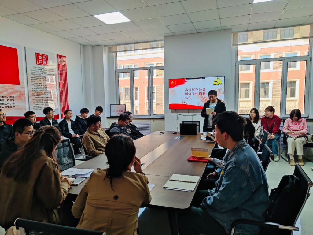 在活动中,支部党员代表刘佩佩、郭宏泽、陈漫、朱竟驰、胡慧杰、李瑞六位同志共同阅读了《习近平的七年知青岁月》、《优秀共产党员先进事迹选编》、《红色家书-共产党员的初心》等红色经典书籍。在分享中,一个个鲜活的人物、一幕幕感人的景象生动再现了革命先辈的家国情怀,让在场党员深刻感受信仰的力量。支部书记鄂小雪在总结中指出,我们每一位党员必须深刻铭记历史,坚定不移地捍卫初心和使命。作为新时代的学生党员,我们有责任继续传承发扬面对困难不退缩、勇于为社会做出贡献的精神。通过这次活动的开展,广大党员纷纷表示,要将学习成果转化为推动科研工作的强大动力,以实际行动践行党的宗旨,不断提高服务人民的本领,为实现全面建设社会主义现代化国家新征程贡献智慧和力量。