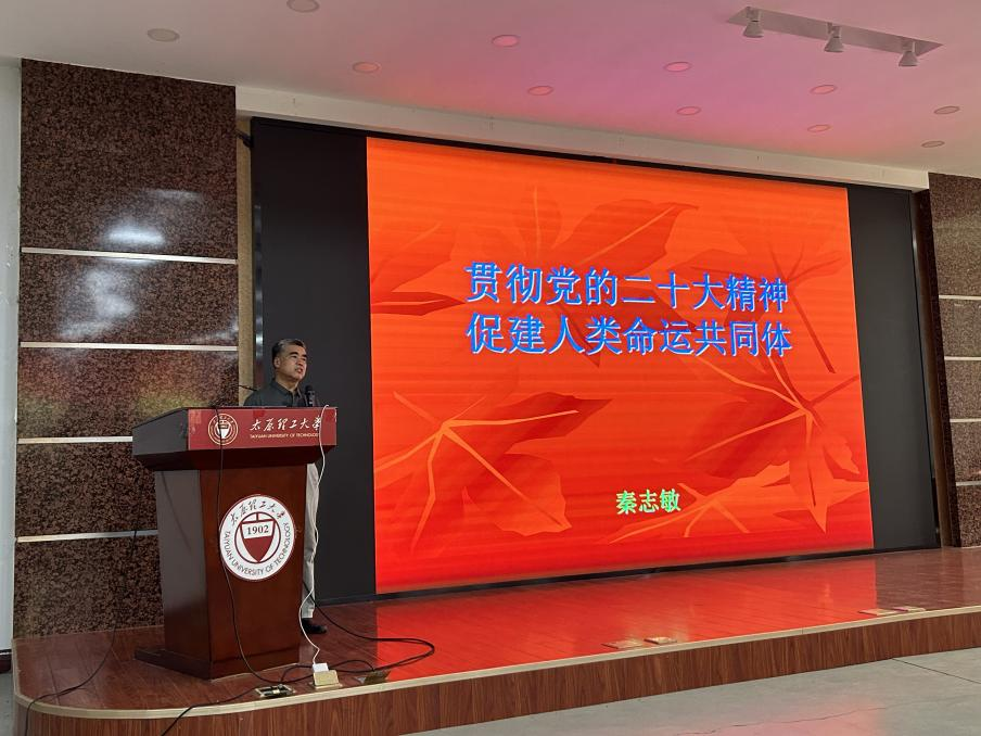 9月17日,秦志敏开展了题为“贯彻党的二十大精神,促建人类命运共同体”的讲座,他阐明了人类命运共同体的核心理念、建构方式以及实践路径,并介绍了习近平新时代中国特色社会主义思想中对于人类命运共同体这一理念的阐释,让同学们深入了解到构建人类命运共同体的深远意义。